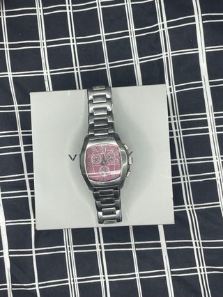 Reloj Festina con esfera rosa y detalles plateados. - Diseño deportivo y elegante. - Correa de metal. - Bisel con detalles. - Cronógrafo. - No tiene pilas debido al no uso