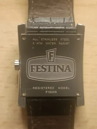 Reloj Festina para hombre, en estado excelente. Usado solo en tres ocasiones, prácticamente como nuevo. Esfera negra elegante con detalles dorados. Indicador de fecha. Caja en acero inoxidable. Correa de piel auténtica en perfecto estado. Funciona perfectamente. Ideal para regalo o para alguien que quiera un reloj de calidad a buen precio.