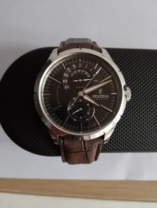 Reloj Festina multifunción para hombre. - Esfera negra con detalles plateados. - Correa de piel negra. - Resistente al agua. Totalmente nuevo, fue un regalo pero no es mi estilo.