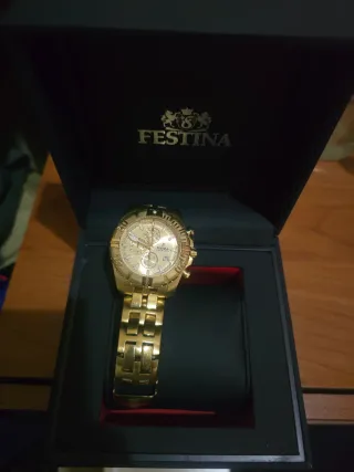 Reloj festina doble chapado de oro original con la caja, esta practicamente nuevo, me costo 400 euros hace 2 años, y lo vendo por 110 euros porque esta prácticamente nuevo.