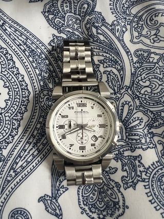 Reloj fossil de la linea Rhett. Precio de lista de 180€. Precio negociable. Prácticamente nuevo solo me lo he puesto dos veces. Mejor quedar y lo compruebas. Tiene dos eslabones quitados pero están en la caja como se ve en la foto