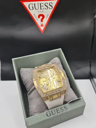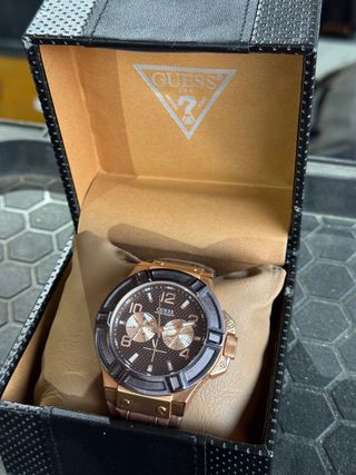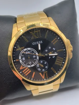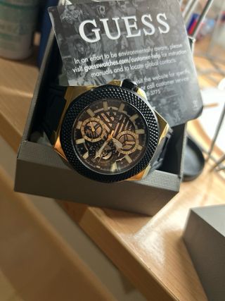 Elegante reloj de pulsera de la marca Guess. - Color dorado con detalles en negro. - Diseño moderno y sofisticado.