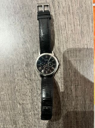 Reloj de acero inoxidable con movimiento de Cuarzo analógico. Multifunción. Caja de acero inoxidable tratada con P.V.D. Correa de Piel en color Negro de 43mm, largo total 25cm, ancho 21mm, con hebilla de acero inoxidable. Esfera en color Negro. Cristal mineral. Visualización de fecha. Batería nueva. Formato 12/24 horas. En muy buen estado con señales normales de un buen uso. Sumergible 30mt. Mira 👀 las fotografías 📸 que también son parte de la descripción. 👉Sí sí, hacemos 🚚 envíos. Por 🙏 favor, visita nuestro perfil y ✔️márcanos como usuario favorito 💗. Muchas🤝gracias. Regresa 👋 pronto. Sandra & Patrick
