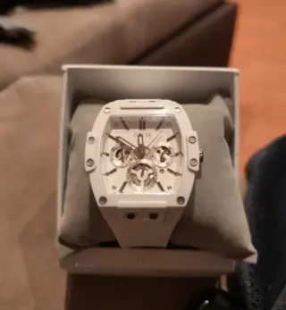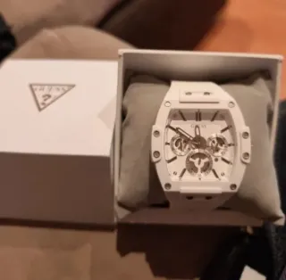 Elegante reloj de la marca GUESS en color blanco. Un accesorio moderno y llamativo. Con Diseño cuadrado, Correa de material resistente y detalles en plateado Aún conserva la GARANTÍA y el plástico protector en la base, ya que solo se ha usado en dos ocasiones. Ademas, viene con la caja y todo tal cual como al comprarlo. Precio original: 170€