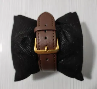 Elegante reloj Guess con detalles en dorado y marrón. - Esfera con textura. - Bisel con acabado oscuro. - Correa de cuero o similar.