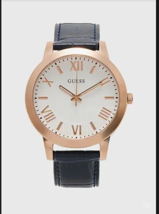 Elegante reloj Guess de hombre con correa negra y detalles dorados. NUEVO A ESTRENAR Y ORIGINAL 100% - Esfera blanca con números romanos. - Correa de piel negra. - Acero inoxidable en tono dorado. #Rolex #Patek Philippe #Audemars Piguet #Omega #Cartier #Swatch #Prada #Tous #Pandora #Louis Vuitton #Valentino #Prada