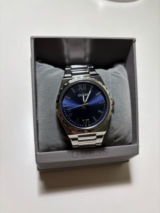 Elegante reloj Guess con una esfera azul y detalles plateados. - Diseño moderno y sofisticado. - Correa de metal plateado. - Caja de presentación incluida. - Etiquetas , sin usar . Lo vendo porque me lo regalaron y ya tengo uno muy parecido y no podía devolverlo debido a que era un regalo.