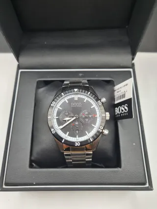 Reloj Hugo Boss para hombre en oferta con caja de acero inoxidable 44 milímetros, esfera negra con subesferas de cronógrafo funcional y escala taquímetro en el bisel. Brazalete de acero inoxidable plateado con cierre desplegable. Resistencia al agua 5 ATM (50 m). Reloj nuevo, 100 % original y sin estrenar. Incluye caja oficial Hugo Boss, etiquetas y documentación. Se envía su factura con IVA y 3 años de garantía legal. Más de 640 envíos con valoración media 4,95/5 avalan nuestro total compromiso con los clientes a lo largo de los años. Más relojes de marca en oferta en nuestro perfil de wallapop!!