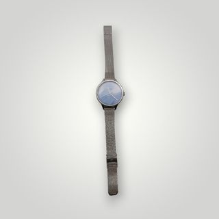 Reloj cronógrafo con caja de acero inoxidable mate, esfera azul mate con efecto rayo de sol y dos subesferas con corte diamante a las 12 y 6 horas. Brazalete de malla milanesa en acero inoxidable. Dimensiones de caja 44mm. Valorado en en 349€ (El Corte Inglés)