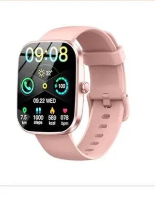 Reloj inteligente para mujer con un diseño moderno y elegante. - Correa de silicona en color rosa. - Bisel y detalles en tono dorado. - Pantalla táctil a color.se puede hablar por el y recibir mensajes