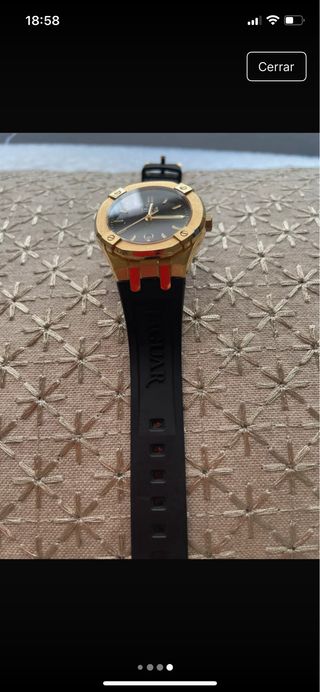 Precioso reloj Jaguar con detalles dorados y correa negra. - Esfera negra. - Correa de caucho. - Bisel dorado. - Cristal de Zafiro