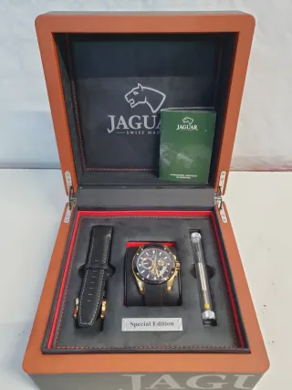 Elegante reloj Jaguar, edición especial, comprado hace un mes y sin usar. Presentado en su caja original. Special Edition MODEL J689 - Diseño con detalles en dorado y negro. - Incluye correa adicional. - Herramienta para ajuste de correa.