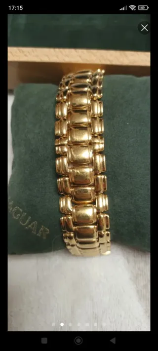Reloj suizo para hombre de la marca Jaguar. Modelo Executive en dorado con esfera verde, cristal de zafiro y bisel giratorio negro. Reloj impecable. Como nuevo y funciona perfectamente. Tiene la caja nueva original y el eslabón incluido. Quiero venderlo en mano en Valencia o lo envío certificado previo pago. No negociable. Bloqueo ofertas ridículas.