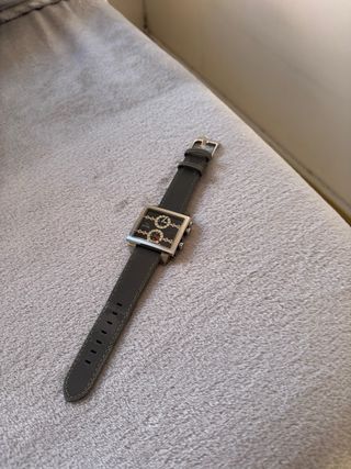 Vendo reloj Jaguar original, cronógrafo, Swiss Made, en acero inoxidable, elegante y deportivo a la vez. Características: • Marca: Jaguar • Movimiento: cuarzo suizo • Cronógrafo funcional • Resistencia al agua: 100 metros • Caja cuadrada de acero inoxidable • Esfera negra con detalles en tono rosé • Fecha a las 4 • Referencia: J633 Estado: • El reloj funciona correctamente • Cristal y caja con marcas normales de uso (ver fotos) • ⚠️ Importante: la correa de piel está cosida/fijada, no es intercambiable sin pasar por relojero. La correa está usada, se recomienda cambiarla si se quiere dejar perfecto. Ideal como reloj