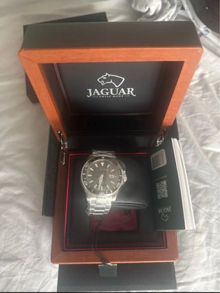 Espectacular reloj Jaguar AUTOMÁTICO en perfecto estado. Se entrega en su caja original de madera. - Movimiento automático. - Cristal de zafiro. - Esfera azul y roja - Resistente al agua (20 bar). - Correa de acero inoxidable/quirúrgico - Reloj fabricado en Suiza - Diámetro caja 43,5 mm - Peso 193,45 g - Cierre desplegable - Corona de Rosca 1 solo propietario particular. Comprado en concesionario oficial en Barcelona Nota: no hago envíos. Precio no negociable.