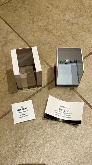 Reloj digital de la marca Kronos de color naranja con caja y papeles