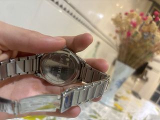 Elegante reloj Lacoste con una esfera blanca y detalles plateados. - Diseño moderno y minimalista. - Correa de malla plateada estilo italiana - Logo de Lacoste en la esfera. Tiene muy poco uso Escucho ofertas