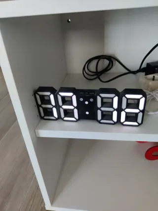 Reloj digital con pantalla LED 3D de diseño moderno. Pantalla con números grandes y luminosos. Base blanca. Iluminación LED azul. Nuevo sin uso. No envío sólo entrego en persona. Hogar,habitación,salón,escritorio,estantería,armario,mueble,lampara,espejo,cuadro,sofá,mesa auxiliar,mesa de noche,chaiselongue,alfombra,sobremesa,reloj de pared,jarrón,planta,smart TV,ps5,ordenador,portátil,tablet,teclado,smartwatches,móvil,iPhone,proyector,silla gaming,figuras,muñecos,funko pop,decoración,velas,ikea