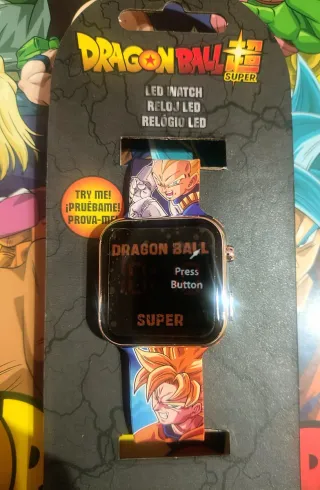 Reloj LED con diseño de Dragon Ball Super. - Personajes icónicos de la serie. - Correa ajustable. - Pantalla digital LED. - Completamente nuevo. Solo venta por wallapop.