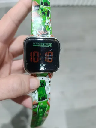 Reloj digital con temática de Minecraft, ideal para los fans del juego. El diseño presenta personajes y elementos icónicos del universo Minecraft. - Pantalla LED. - Correa con estampado de Minecraft. - Apto para mayores de 6 años.