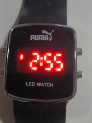 Reloj digital de la marca Puma con diseño moderno. - Correa de material sintético. - Pantalla LED. - Diseño cuadrado.
