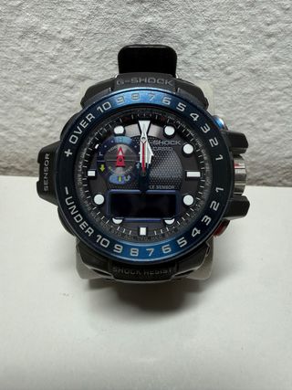 Reloj Casio G-Shock Mudmaster GG-1000 con detalles dorados. EDICIÓN LIMITADA CASIO GG-1000G-SHOCK SUPERIOR SERIES,FUNCIONES: Super-Auto LED Light; Resistente a los golpes; Carcasa antisuciedad; Pantalla de neón; Termómetro (-10 °C / +60 °C); Brújula; Función de hora universal; Cronómetro - 1/100 seg. - 24 horas; Temporizadores - 1/1 minuto - 1 hora; 5 alarmas diarias; Función de despertador; Sonido de los botones activado/desactivado; Calendario automático; Indicación de hora normal de 12/24 horas; Cristal mineral; Caja de resina; Buckle; 2 años de pilas Clasificación de resistencia al agua (20 bar) MUY DIFÍCIL DE CONSEGUIR.