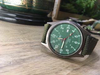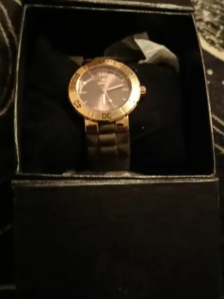 Reloj un poco usado pero funcionando. Tiene una pequeña manchita en la esfera.