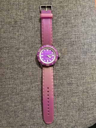 Un toque de color y estilo en tu muñeca 💫 Reloj Nautica original, color morado vibrante, con correa de silicona suave y mecanismo funcional. Diseño moderno, deportivo y resistente al agua — ideal para el día a día o para darle un toque diferente a tus looks. 💜 Funciona perfectamente. ⌚ Sin caja, pero en muy buen estado, usado muy poco. 🌊 Resistente al agua hasta 100 m y con cierre de acero inoxidable grabado con el logo Nautica. Perfecto para quienes buscan un reloj original, con personalidad y duradero.