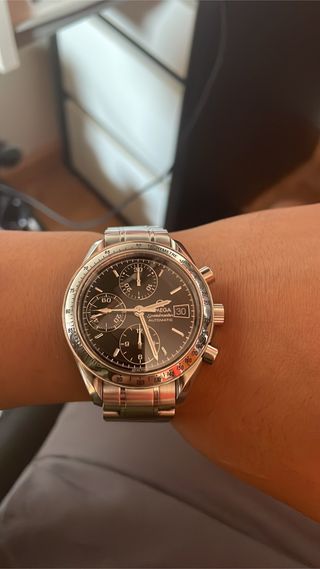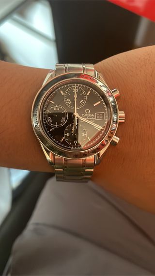 Reloj Omega Speedmaster con movimiento automático y caja de 38mm. Incluye los documentos originales, solo falta la caja. Lo compré en 2016. Lo he llevado menos de 10 veces porque es demasiado grande para mi muñeca. Se recoge en Rocarfort