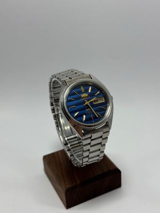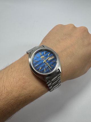 Reloj Orient automático con esfera azul y detalles plateados. - Movimiento automático. - Correa de metal plateado. - Diseño clásico y elegante. esfera camaleónica Todo funciona, revisado por un relojero Vendo en Valencia