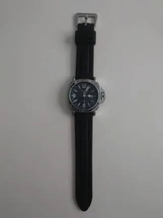 Reloj automático Panerai Luminor GMT con correa de cuero negra y detalles plateados. - Movimiento automatico GMT totalmente funcional. - Esfera blanca. - Correa de cuero negra. - Bisel plateado. Reloj totalmente funcional, si vas a preguntar tonterías por este precio ahórratelo, fue un regalo pero no comulgo con este tipo de cosas, para alguien que quiera fardar por poco dinero.