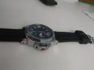 Reloj Panerai Luminor Regatta cristal de zafiro , con correa de caucho ,Recién revisado en relojeria ......es .mecánico y ,.de buceo . - Esfera negra. - Bisel plateado. - Correa negra con inscripción. - Cierre de hebilla.
