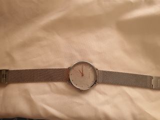 Precioso reloj de la marca Parfois. Tiene una correa de malla metálica plateada y una esfera blanca con detalles brillantes. Es elegante y discreto, perfecto para el día a día. - Correa de malla metálica. - Esfera blanca con detalles. - Diseño minimalista.
