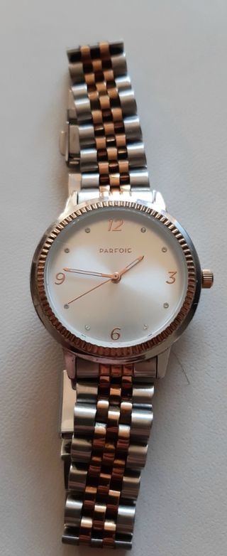 Reloj de dama Parfoic, usado excelente condición, con pila nueva recién puesta, funciona a al 100 %, , la esfera mide 35 mm de borde a borde, Acero inoxidable, movimiento Quart, estoy cerca de la entrada principal del hospital Dr peset, av gaspar aguilar 90 Valencia