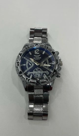 Se vende reloj Showe Quartz con correa de acero Estado estético: usado, con marcas visibles de uso en caja y bisel (ver fotos). Diseño deportivo, esfera azul con cronógrafo decorativo. Se vende tal cual, sin caja ni documentación.