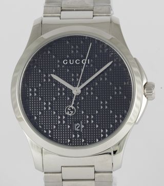 Marca/Brand: Gucci Modelo/Model: Quartz Steel G Timeless Referencia/Reference: 126.3 Tipo de movimiento/Movement type: Cuarzo Material de la caja/Case material: Acero Diámetro/Diameter: 40 mm Material del brazalete/Bracelet material: Acero Medida máxima del brazalete/Maximum bracelet size: 190 mm Caja/Box: No Papeles/Papers: No Estado del reloj/Watch status:Tiene marcas de uso típicas de un reloj de segunda mano - Funciona correctamente