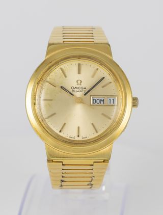 Marca/Brand: Omega Modelo/Model: Day Date Quartz Plaque or G 20 Microns Referencia/Reference: 196.0058 396.0843 Tipo de movimiento/Movement type: Cuarzo Calibre/Caliber: Omega 1310 Material de la caja/Case material: Acero Diámetro/Diameter: 37.5 mm Material del brazalete/Bracelet material: Acero Ancho correa/Strap width: 18 mm Medida máxima del brazalete/Maximum bracelet size: 195 mm Caja/Box: No Papeles/Papers: No Estado del reloj/Watch status: Tiene marcas de uso típicas de un artículo de segunda mano