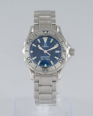 Marca/Brand: Omega Modelo/Model: Seamaster Professional 300M Quartz Referencia/Reference: 2285.80.00 Tipo de movimiento/Movement type: Cuarzo Calibre/Caliber: Omega 1424 ETA 256.461 Material de la caja/Case material: Acero (Bisel Nuevo 2024) Diámetro/Diameter: 29 mm Material del brazalete/Bracelet material: Acero Medida máxima del brazalete/Maximum bracelet size: 176 mm Caja/Box: Sí Papeles/Papers: No Estado del reloj/Watch status: Tiene marcas de uso típicas de un artículo de segunda mano Revisión completa Septiembre 2024 / Full revision September 2024