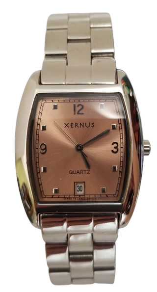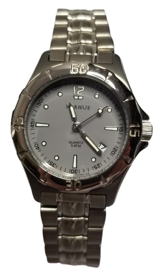 Elegante reloj de pulsera con un diseño clásico y sofisticado. - Correa de eslabones metálicos. - Esfera con marcadores horarios dorados. - Detalle de Quartz en la esfera.