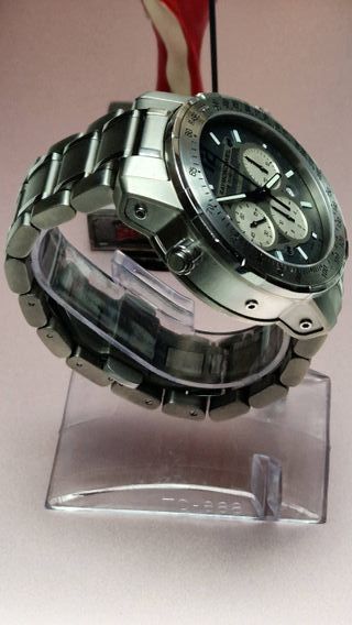Nuestro Raymond Weil Don Giovanni Chronograph 4873 tiene una caja de acero inoxidable de 29 mm x 39 mm con funciones de cronómetro y fecha y su correa original de piel marrón claro Raymond Weil con cierre desplegable. Presentado en excelentes condiciones y con ligeros signos de uso, se trata de un versátil y atractivo cronógrafo neo-vintage que es del año 2004. No incluye caja ni papeles originales, pero registrado como propietario con el fabricante del reloj. Como se muestra en la foto, el brazalete original tiene una mancha y puede ser sustituido por un distribuidor autorizado. Escucho ofertas.