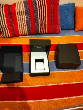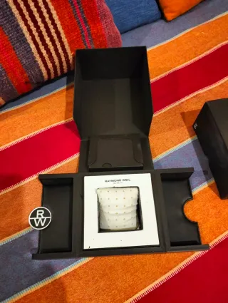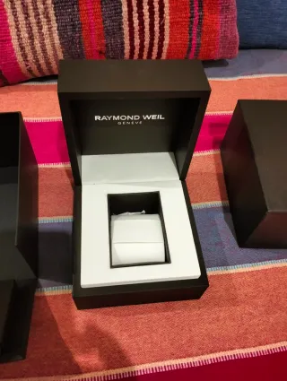 caja original reloj Raymond Weil. - Incluye el cojín interior para el reloj. - Compartimentos para documentación o accesorios.