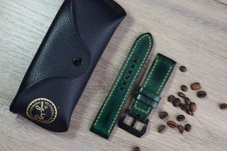 Descripción (versión segura y optimizada): Correa de cuero verde artesanal para reloj Hecha completamente a mano con cuero natural de alta calidad. Diseño elegante y resistente, ideal para relojes de estilo Panerai, Rolex, Omega o Tag Heuer. Cada pieza es única gracias a la textura del cuero. Precio no negociable. Ancho: 20 / 22 / 24 mm. Longitud: 130 x 80 mm. Cuero curtido vegetal, suave y duradero