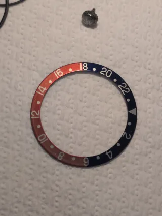 Bisel de recambio para Rolex GMT Máster (16700) Se regalan piezas de mecanismo para dicho modelo sustituidas en revisión junto con el bisel. Piezas Originales sustitidas procedentes de revisión oficial. Pueden presentar algún desgaste menor. - Color rojo y azul (Pepsi) - Pieza original usada. *** Debido al producto y su valor, la venta es definitiva- No se admite devolución *** Comprueben que el modelo sea el correcto.