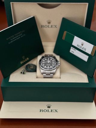 Reloj Rolex Submariner 124060, modelo de acero con esfera negra. Incluye su documentación original. - Modelo: 124060 - Año: 2024 - Material: Acero inoxidable - Color de la esfera: Negro a estrenar, único dueño, comprado por mí en co oficial. usado con moderación. a estrenar caja, libros, holograma, tarjeta de garantía sellada a finales del 2024. cuatro años de garantía aún. eslabones sobrantes, todo como recién sacado de la tienda. factura no rebajo el precio ni acepto cambios salvo un 126610LV u otro rolex solo trato en mano. no bajaré de ese precio, así que no esperes y busca otro gracias. seriedad, por favor.