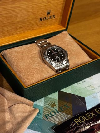 Reloj Rolex Explorer II con caja de acero y esfera negra de 40mm, año 2005. Incluye su caja original y documentación. Estado realmente impecable, no tiene señales claras de uso. - Modelo: Explorer II 16570 - Material: Acero inoxidable y zafiro - Diámetro de caja: 40mm - Color de esfera: Negro - Incluye caja original, documentación de garantía y certificación. 🧬 Honestidad | Transparencia | Confianza Instagram: @onlyspecialwatches Tags: Rolex, Tudor, Hublot, Tag Heuer, Longines, Omega, Tissot, Blacpain, Breguet, Patek Philipe, Breitling, Cartier, Swatch, Hamilton, Seiko