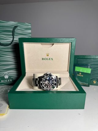 Reloj Rolex Submariner 124060, modelo de acero con esfera negra. Incluye su documentación original. - Modelo: 124060 - Año: 2024 - Material: Acero inoxidable - Color de la esfera: Negro a estrenar, único dueño, comprado por mí en co oficial. usado en unas 10 ocasiones. a estrenar caja, libros, holograma, tarjeta de garantía sellada a finales del 2024. cuatro años de garantía aún. Por supuesto factura a mi nombre. eslabones sobrantes, todo como recién sacado de la tienda. factura no rebajo el precio ni acepto cambios. Solo ese precio por un par dias. solo trato en mano o en banco No mareantes