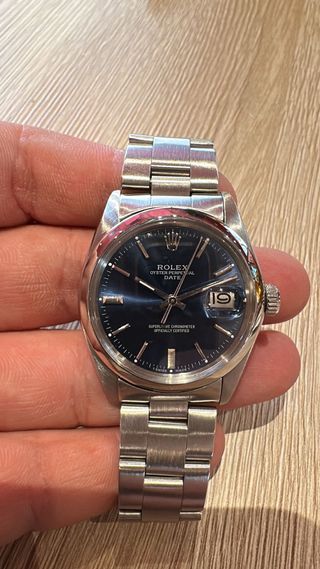 Rolex date 34 Referencia: 1500 Año: 1975 Tamaño: 34mm Cristal: Plexiglas Esfera-Dial: Azul Armis: Oyster Calibre: Automatico 1570 Estado: Bueno 9/10 Revisado hace año y medio por relojero de confianza Se puede comprobar donde sea necesario Entrega en Madrid o envío Acepto cambio por artículos de mi interés Rolex. Omega. Cartier. Hublot. Panerai. Tudor. Ap. Audemars Piguet. Patek. Longines. Speedmaster. Vintage. Colección.