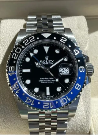 Reloj de pulsera Rolex GMT-Master II año 2025, conocido popularmente como Batman. Bisel cerámico giratorio bidireccional con escala GMT de 24 horas. Reloj Nuevo a estrenar, full set con caja y documentación, con toda la garantía internacional activada electrónicamente y sellada por distribuidor oficial de la marca. Precio 18500€. Fijo NO negociable, NO cambios NI compro relojes, NO contesto ofertas, NO hay tienda física. Envios a toda España, Italia y Portugal. Consulta entrega en mano. Más relojes en mi perfil.