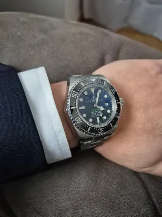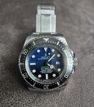 Reloj Rolex Deepsea Sea-Dweller con esfera azul. - Caja de 44mm con cristal de Zafiro y bisel giratorio unidireccional. - Correa de acero inoxidable 904L. - Maquinaria like Rolex 3135 asiática. - Última revisión febrero de 2026. - Sin estuche ni papeles. - Muy buen estado con algunos signos leves de uso. - Dos eslabones accesorios.