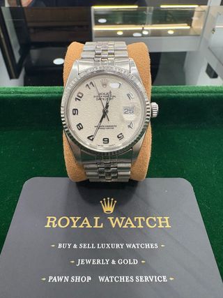 Royal Watch Marbella vende estupendo Rolex Datejust 36mm acero en excelentes condiciones, esfera blanca con numeros arabe y correa jubilee, solo reloj y nuestra garantía Se vende revisado con un año de garantía Tenemos tienda en Marbella Royal_watch_marbella_rolex